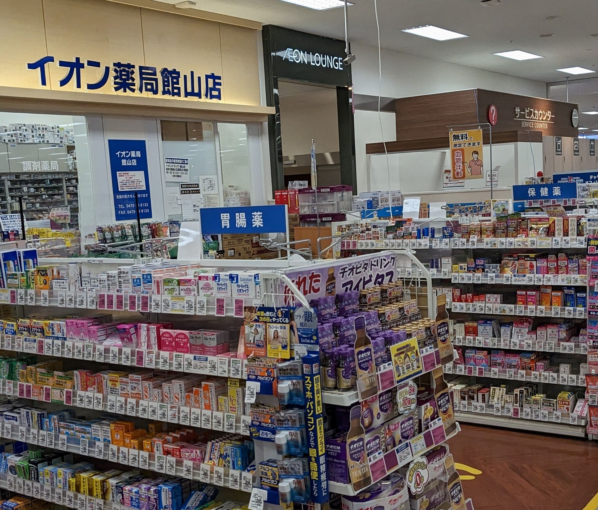 さて、ラウンジですが、食品売場の海側横の薬局の隣にあります。海側といえば、ここのイオンから歩いて5分ほどで海が見えます。